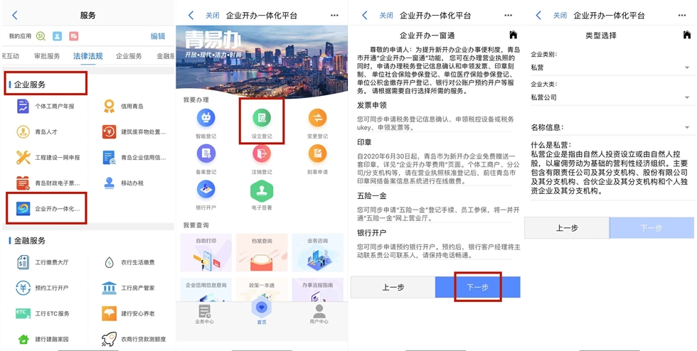 青島新聞網9月15日訊 為提升新開辦企業辦事便利度,青島市開通“企業開辦一窗通”功能,通過企業開辦一體化平臺,企業登記、稅務、刻章、社保、醫保、公積金、銀行開戶,開辦企業實現“一網通辦、全程網辦”。為進一步優化營商環境、提升便民利企服務效率,“愛山東?青e辦”APP接入了企業開辦一體化平臺,擴展企業開辦掌上辦理渠道。