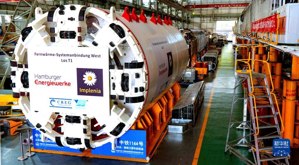 這是10月16日在河南鄭州拍攝的中鐵裝備首臺出口德國的盾構機。新華社發