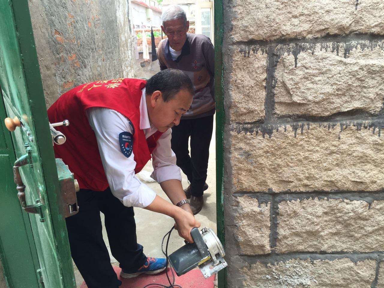 在以后的陪伴中,我就開始細心地觀察,有時候與老人的交談中也暗中打探老人有沒有需要的東西,了解情況后我們都會積極努力地去幫老人解決困難。夏天,我們為老人院子里搭起遮陽棚,冬天,為老人院子里的水管加上保溫棉。每一件事情都是細心觀察,用心去做!我們結對的空巢老人中有位叫曲方平的大爺,性格開朗,非常健談,但是有一件事情困擾著大爺十幾年,曲大爺年屆九旬,聽力不好,曲大爺家有一個院子,老人獨居屋內,院子的鐵門從里面鎖上,有人來敲門,老人聽不見,外面的人就非常著急,所以曲大爺就問我們志愿者有沒有什么好辦法幫他解決這個難題。我得知大爺的這個心愿后,立即開動腦筋想辦法,經過好幾天的苦思冥想,終于確定下了解決方案,我買來插銷,帶上工具,為曲大爺家的鐵門安上了合適的插銷,使鐵門里外都能打開,門打開了,也打開了曲大爺十幾年的心結。大爺試過以后感覺既美觀又實用,逢人就夸志愿者真有本事,沒有解決不了的事!我也為做了點讓老人開心的事而自豪。還有一次與曲大爺聊天得知,家里的自來水都是在早上和晚上這兩個時間段定時定點地放水,每次放水的時候,老人就用水桶接滿水再倒入水缸里,對于腿腳不靈便的曲大爺來說,不僅費時而且費力,老人身體吃不消。我回家后就開始準備好管件及工具,在下一次陪伴的時候,把水管及水龍頭直接接到水缸處,這樣,在放水的時候,老人打開水龍頭,水直接流到水缸里,曲大爺就省事多了!看到老人們的笑容,聽著老人的夸贊,我們志愿者心里真是無比開心!這樣的事還有很多,像王祝才大爺家的水缸蓋,還有王淑蘭阿姨家的紗窗等等,里面都有我的身影。平凡的人做平凡的事,雖然都是生活小事,卻感動著老人們的心,志愿者們也受到社會各界的理解支持與贊揚!后來,我們316路“星語心愿愛心團隊”升級成“怡善巴士愛心團隊”,團隊在我們志愿者的共同努力下,給老人們帶去兒女般的關懷和陪伴,老人們也因為有了我們志愿者的陪伴而享受到了兒孫滿堂的天倫之樂,愛心團隊不斷有新的志愿者加入進來,志愿者隊伍不斷延續壯大。