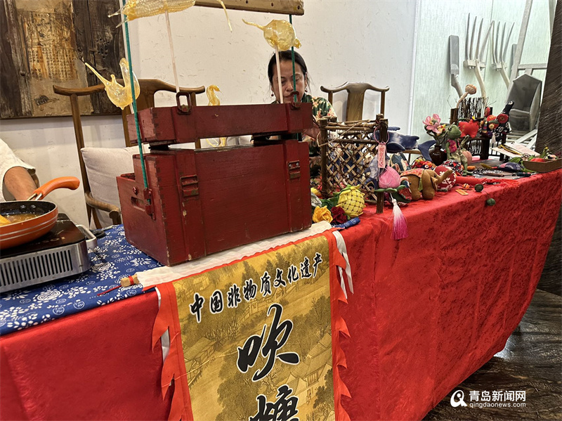 賓客紛至沓來、游人絡繹不絕地走進喬記漁莊,現(xiàn)場民間藝人展示著青島當?shù)氐拿袼坠に?,將?jié)日的氛圍傳遞給每一位來往食客,共同感受青島文化的魅力。