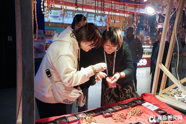 青島新聞網1月27日訊(記者 任俊峰)燈籠高掛開集市,蟠龍悠游賀新春。1月27日至1月28日,一場形式新穎的非遺文化市集在城陽萬象匯舉辦,技藝高超的核雕、栩栩如生的面塑、寓意著吉祥如意的布老虎……“美得城陽”攜手眾多非遺匠人為市民們獻上了一場非遺文化體驗。