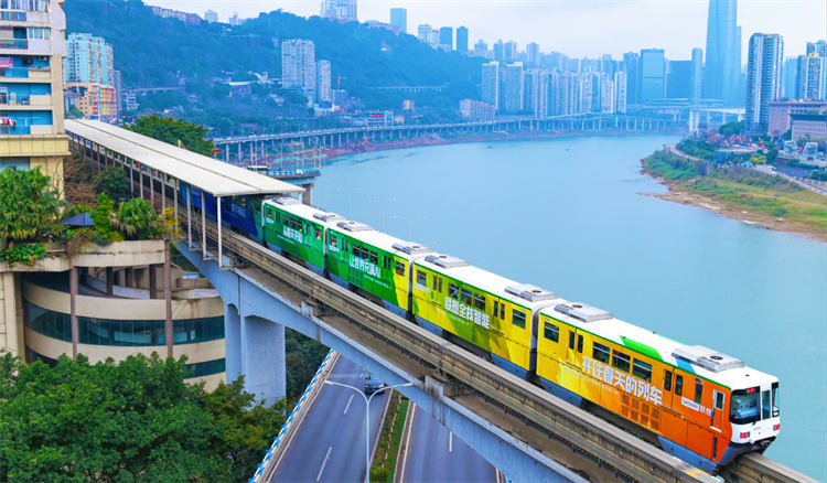 “聯(lián)想全棧智能,讓世界充滿AI,從春天開始”為主題的輕軌廣告在重慶輕軌2號(hào)線全新亮相