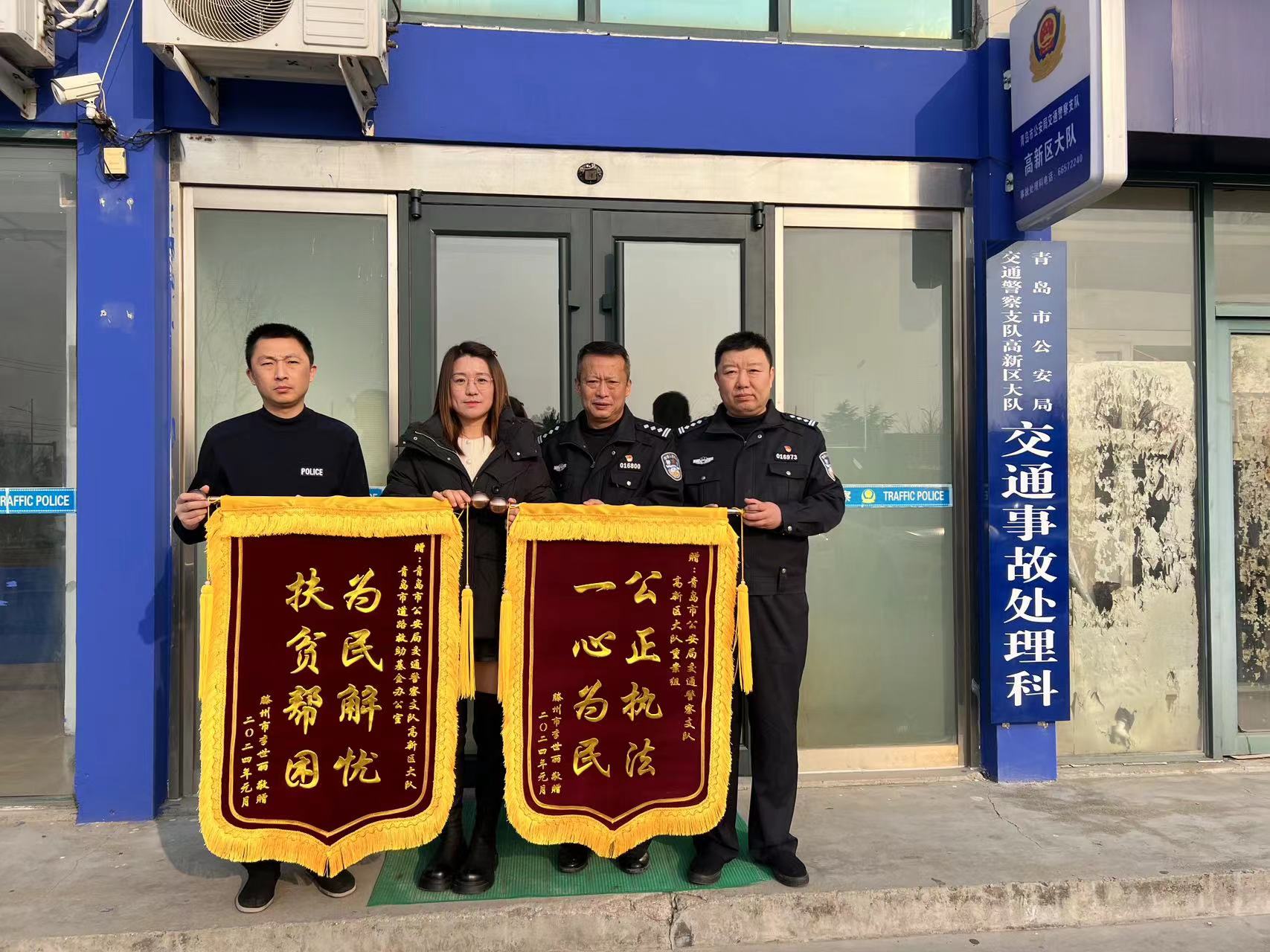 2022年05月26日,郭某某駕駛小型普通客車沿正陽西路由西向東行駛至華東路路口處向右轉(zhuǎn)彎與王某才駕駛無號牌三輪車載著李某某、張某某、王某某三人沿正陽西路由西向東直行發(fā)生事故,致使兩車受損,李某某受傷。受害人女兒李某麗今年2月特意從棗莊到大隊來送錦旗表示感謝