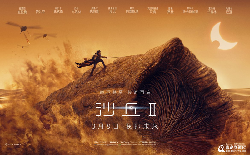 青島新聞網3月10日訊(記者 張力偉)根據弗蘭克·赫伯特著名科幻小說改編,由美國傳奇影業和美國華納兄弟影片公司攜手打造的好萊塢科幻巨制《沙丘2》正在青島萬達影城熱映中,頂級工業大片的沉浸震撼視聽,收獲觀眾好評無數,年度大銀幕狂歡不容錯過!