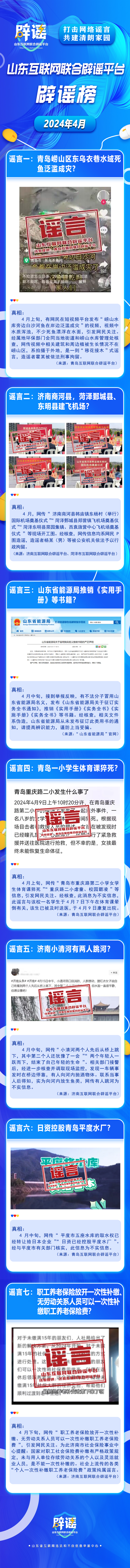 山東互聯網聯合辟謠平臺2024年4月辟謠榜發布