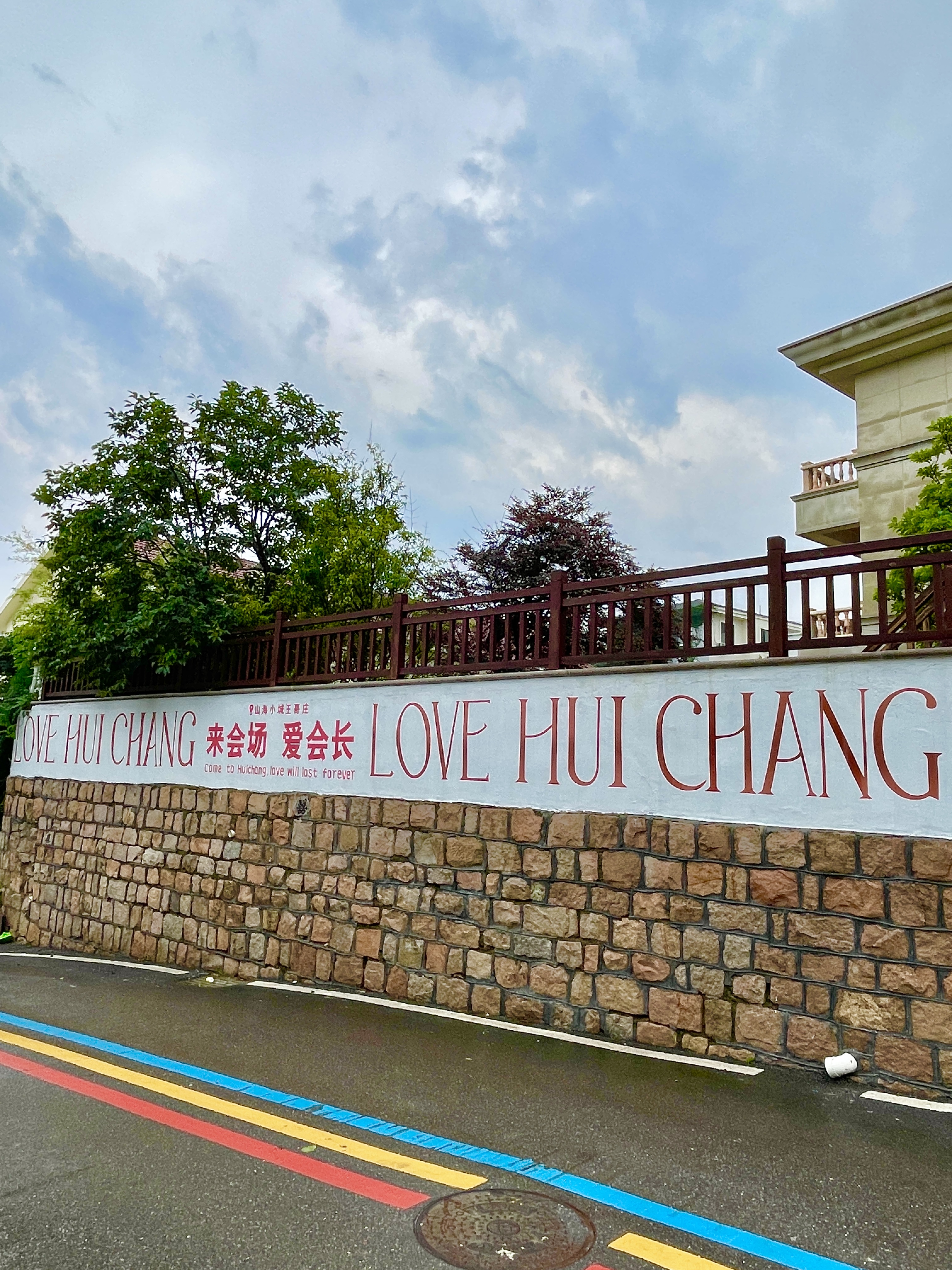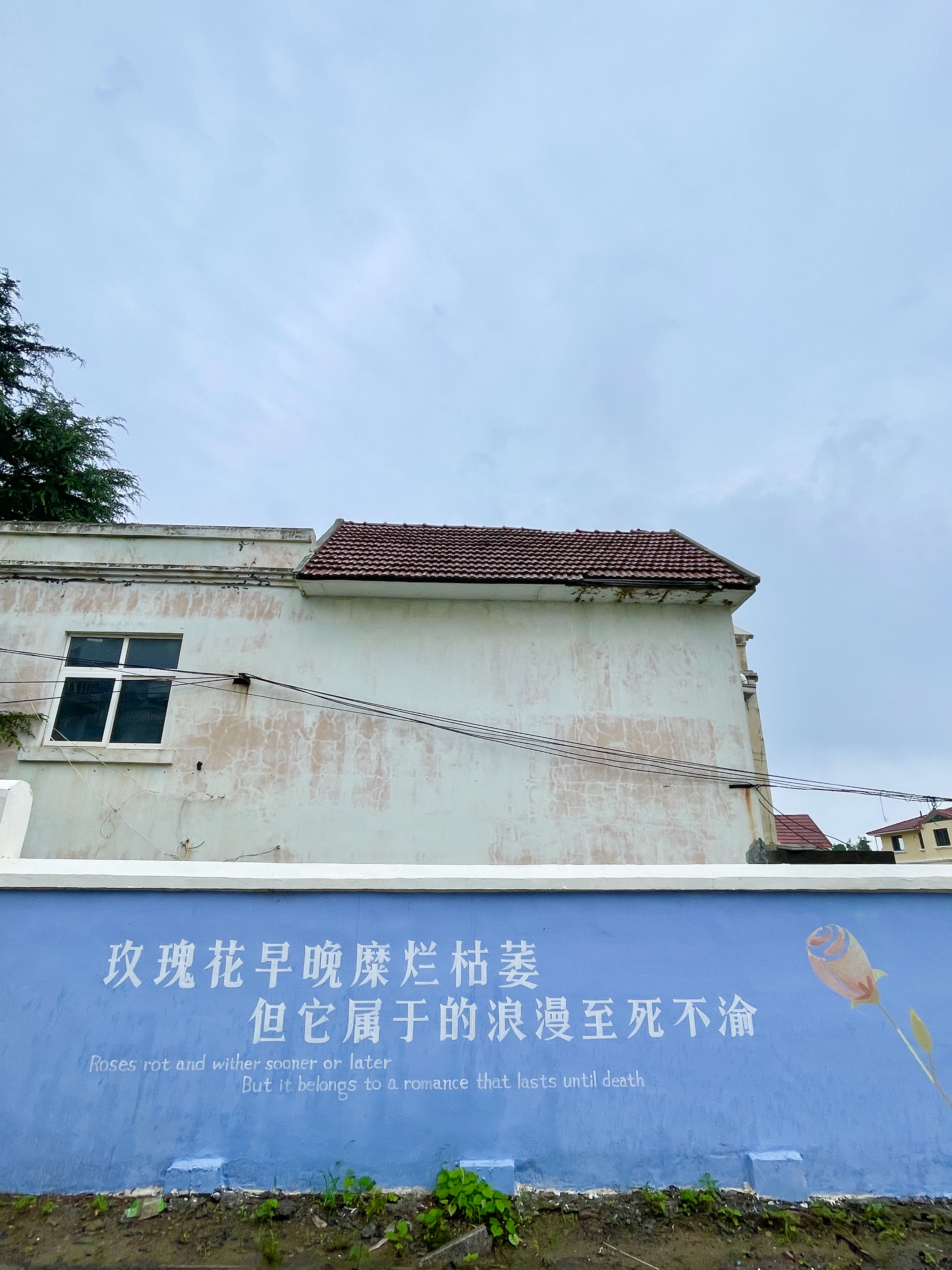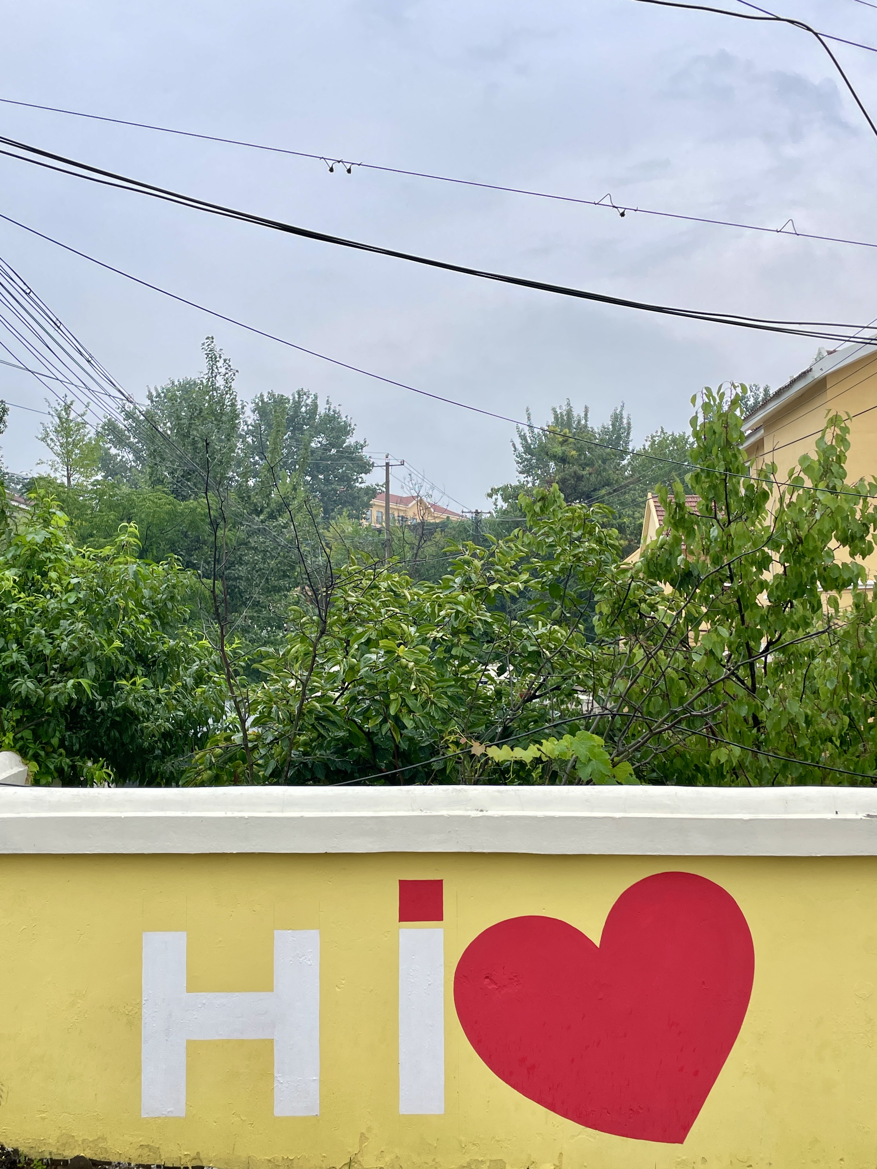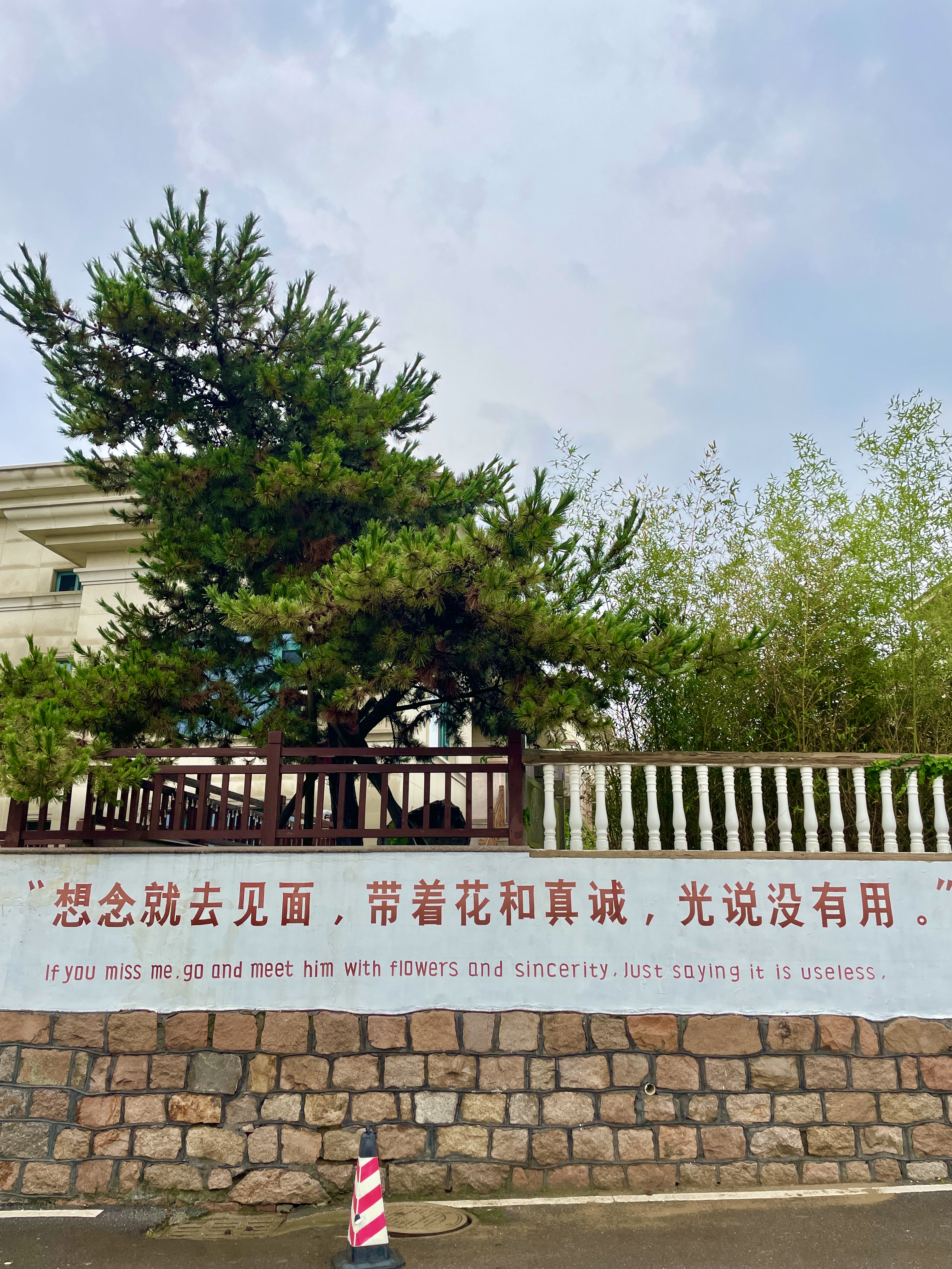 位置有點遠,在嶗山王哥莊,自駕可定位青島君瀾海居民宿,最后拐進小道的時候就會看到涂鴉墻。溫馨提示:拍照時注意過往車輛。