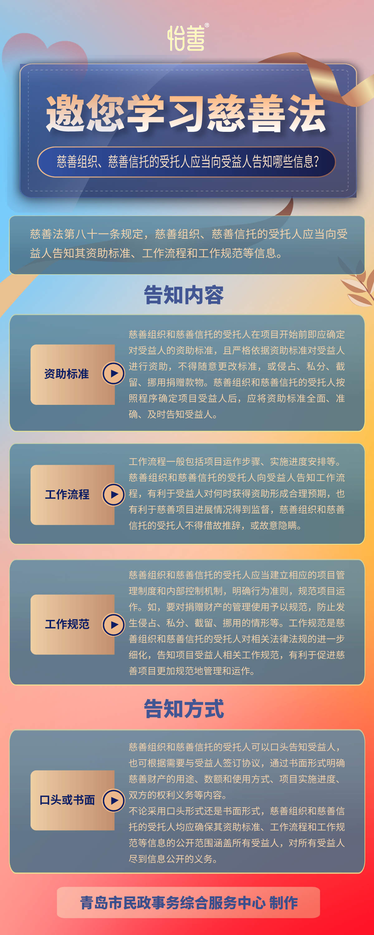 怡善·慈善法規|邀您學習慈善法-慈善組織、慈善信托的受托人應當向受益人告知哪些信息?