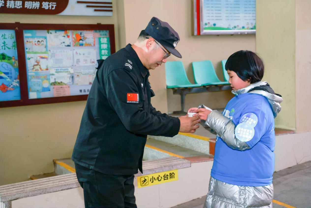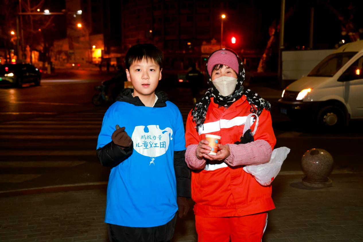 現場志愿者大多是青少年和家長們,家長們頂著寒風,以身作則言傳身教,讓孩子們了解城市街頭早起勞動的戶外工作者,感悟生活艱辛,學會感恩生活,用實際行動表達對他們的尊重與感激。
