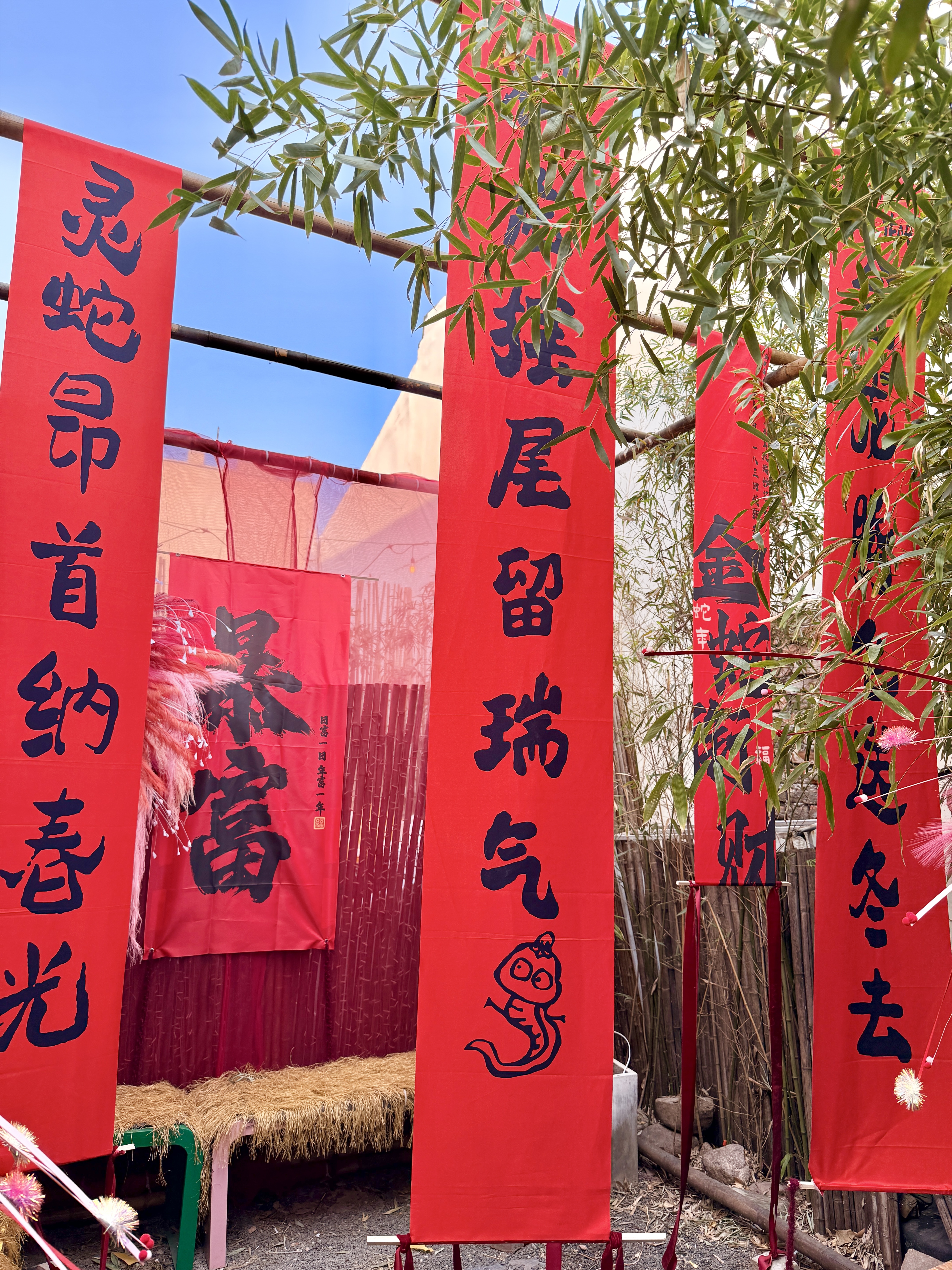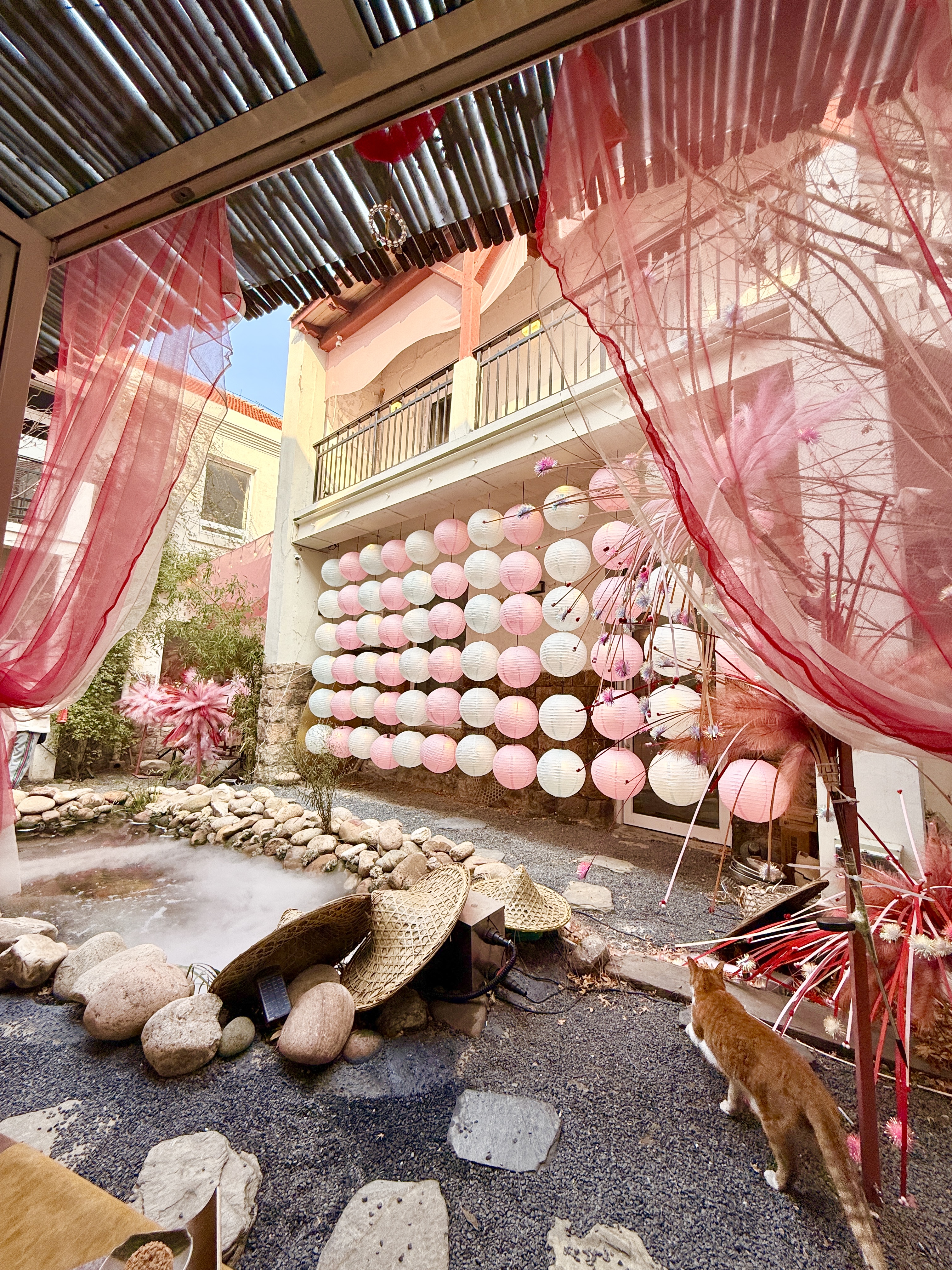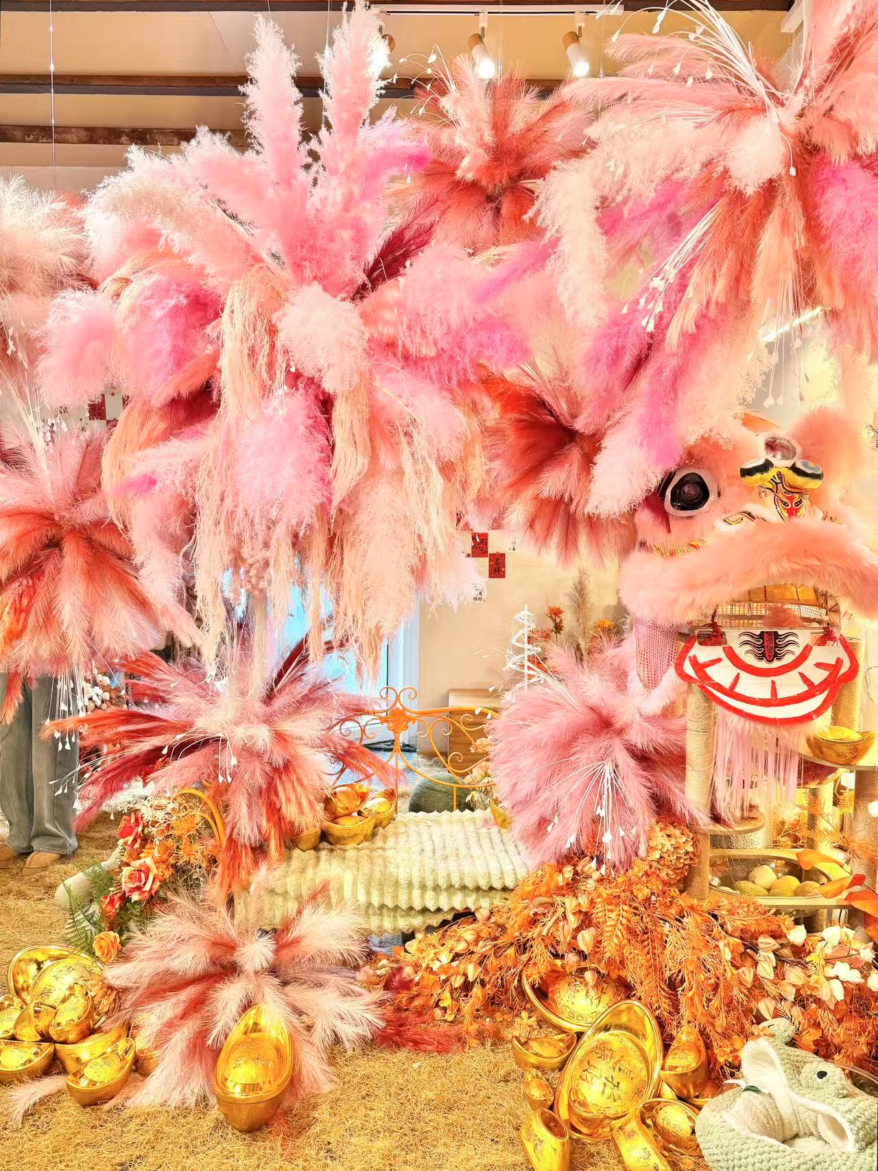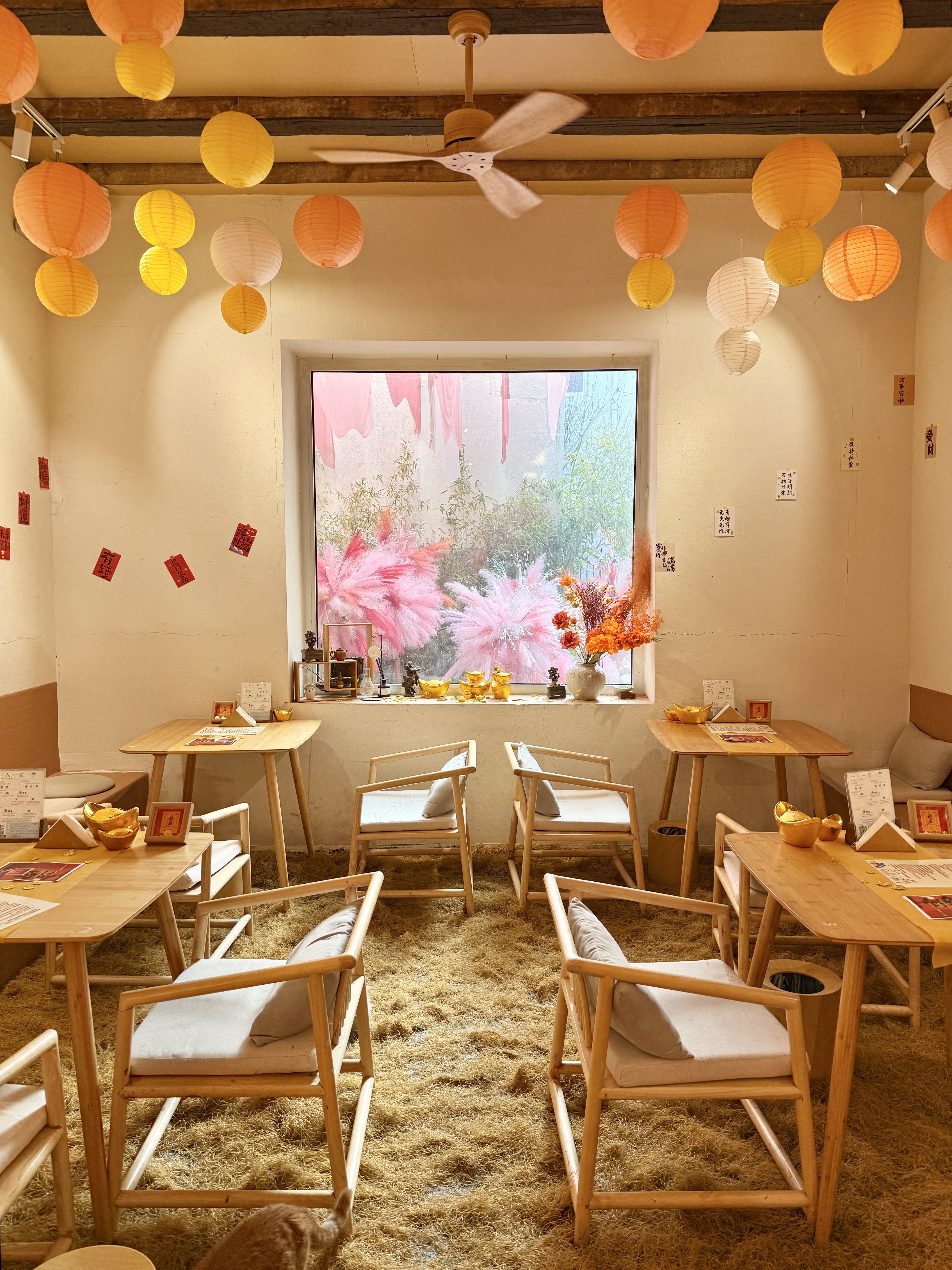 從室內(nèi)到庭院全都是粉色系的新春裝置,院落一隅還有春聯(lián),復(fù)古又清新,店里的喵主子們也盛裝出席,都預(yù)備備好,準(zhǔn)備提前過年啦!
