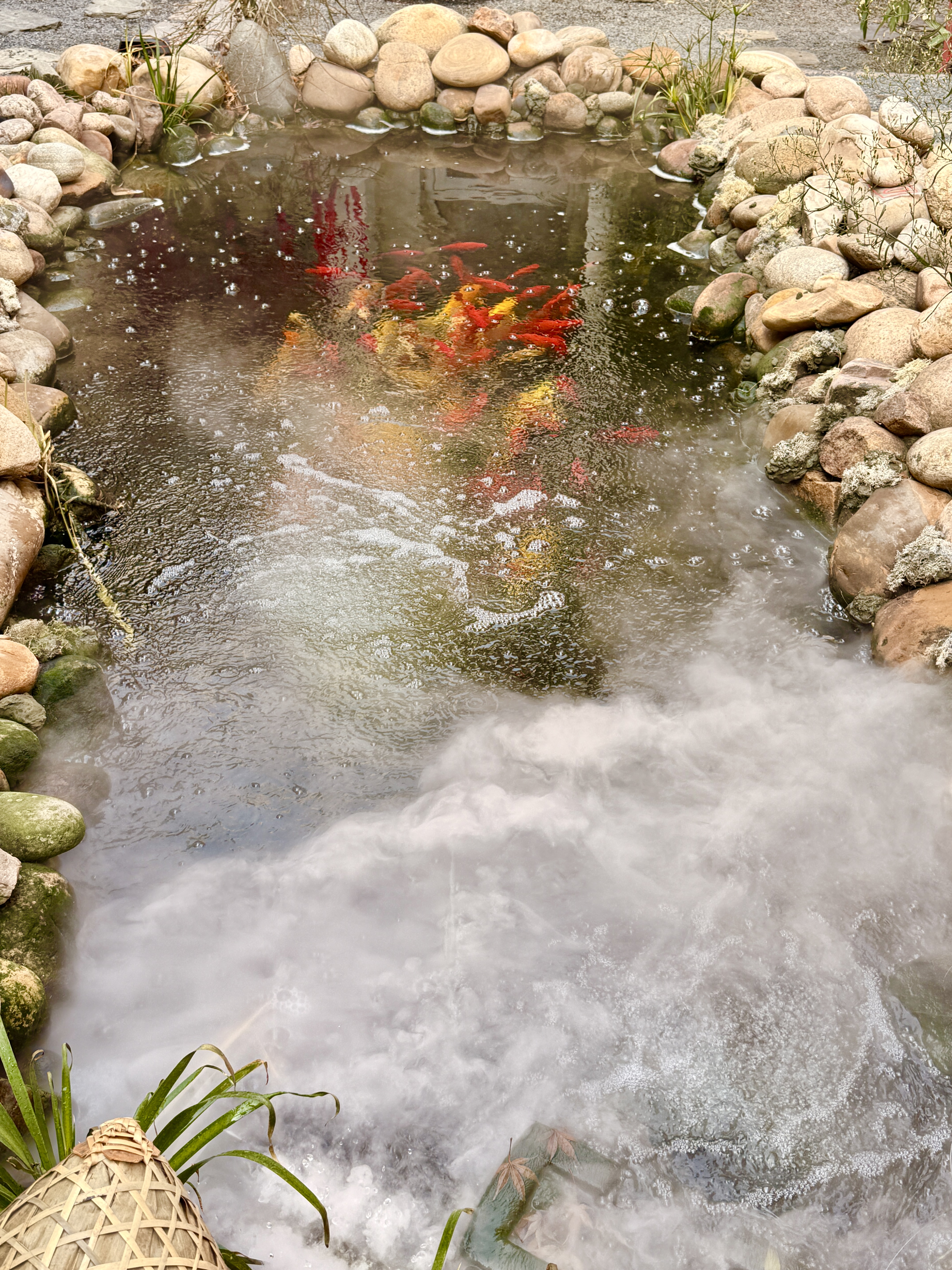 不得不說,南枝小館對中式美學(xué)的拿捏真是相當(dāng)哇塞,總是會不定時的推陳出新,給人帶來耳目一新的驚喜。有水的庭院,石子路,竹桌椅,四季游弋的鯉魚,悠然的貓.……是誰的DNA動了我不說,快叫上你的閨閨去拍照吧。