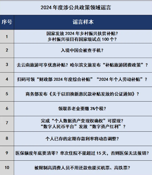 2024年3月,有不法分子冒用國家機(jī)關(guān)名義,假稱“國家發(fā)放2024年鄉(xiāng)村振興扶貧補(bǔ)貼”“鄉(xiāng)村振興項(xiàng)目有國家級(jí)試點(diǎn)100個(gè)”,以高額返利為誘餌,引誘大量不明真相的群眾加入所謂的各類“基金會(huì)”和“項(xiàng)目”,巧立名目騙取錢財(cái)。還有自媒體從公開發(fā)布的政策信息中摘取碎片化信息,斷章取義,對(duì)政策歪曲解讀。如2024年10月,個(gè)別自媒體故意混淆“個(gè)人養(yǎng)老金”與“基本養(yǎng)老金”的概念,傳播“領(lǐng)取養(yǎng)老金要繳3%個(gè)稅”“養(yǎng)老金個(gè)稅起征點(diǎn)為5000元”等不實(shí)信息,引發(fā)公眾誤解。此外,在《國家安全機(jī)關(guān)行政執(zhí)法程序規(guī)定》和《國家安全機(jī)關(guān)辦理刑事案件程序規(guī)定》公布之際,一些別有用心之人借機(jī)造謠抹黑、搬弄是非,大肆炮制所謂“入境中國都會(huì)被查手機(jī)”的謠言,荒謬至極。