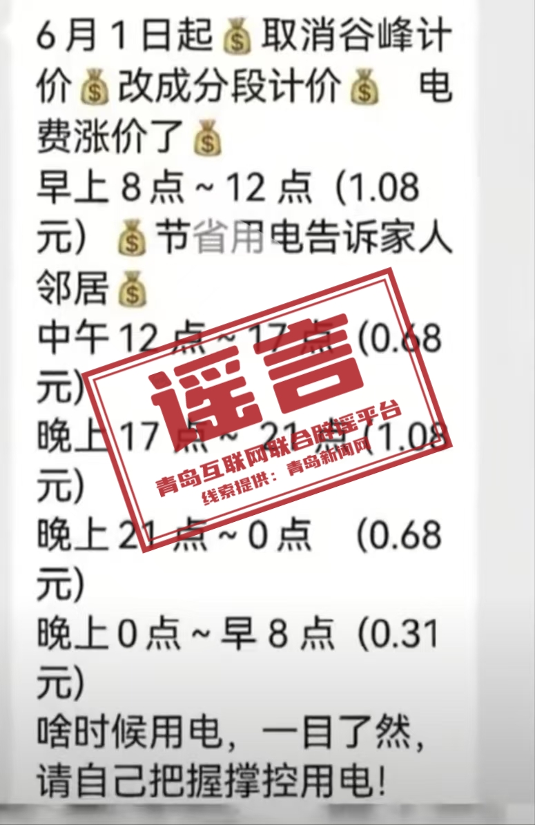 事實上,這并非孤例。此前,湖北、四川、江蘇等地也曾傳出類似謠言,宣稱“居民用電將取消谷峰計價,改為分段計價”,最終均被當(dāng)?shù)毓俜奖僦{。