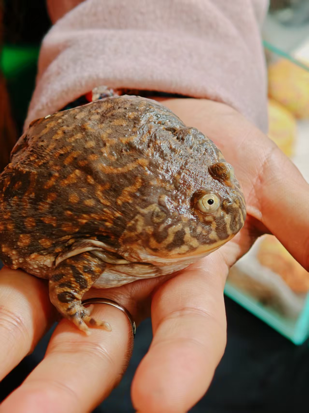 本以為貓狗已經夠萌,直到沖進S1館的異寵區……蛇盤在主人手上,鱗片泛著珍珠光澤;毛茸茸的蜜袋鼯,像個小精靈一樣,在主人的手臂間輕盈跳躍;豹紋守宮,雖小巧卻散發著一種野性的魅力;睫角守宮,那雙帶著“紅眼特效”的眼睛,讓人看一眼便深深著迷;色彩斑斕的角蛙、丑蛙,鼓鼓的大眼睛,圓滾滾的身體,有點呆萌……還有狐獴、臭鼬、寄居蟹、兔子、烏龜、倉鼠、小鳥……這場金諾亞太寵物節,簡直是異寵控的“超現場”!