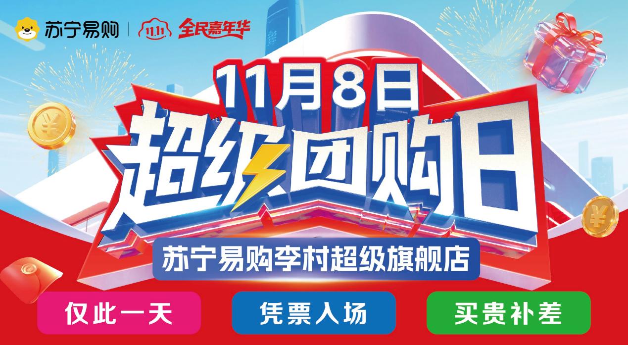 在權益方面,蘇寧易購聯合百大頭部家電品牌,共同啟動多場“超級團購日”,以“真心價”打造家電消費主場。本次雙十一全民嘉年華推出多項重磅惠民舉措: