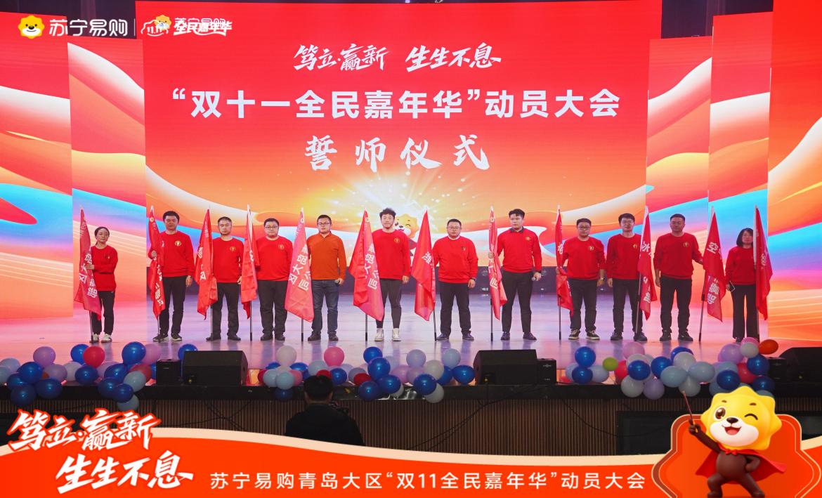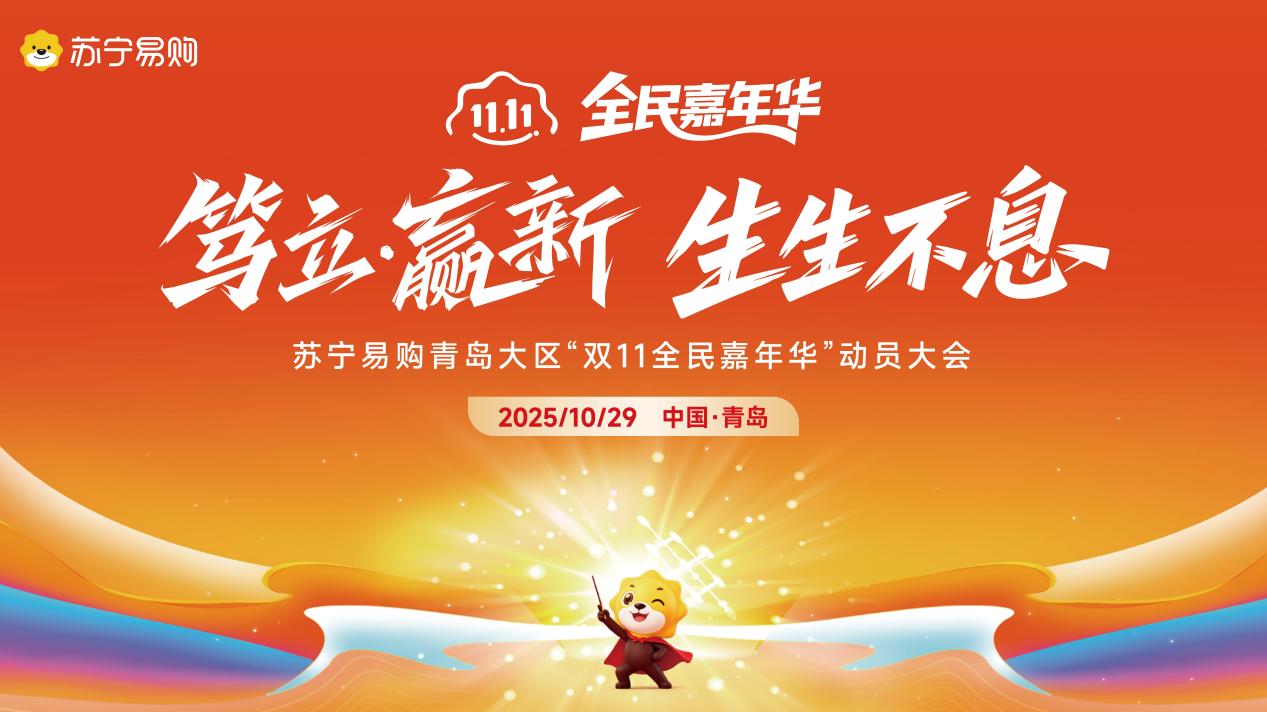2025年10月29日下午,蘇寧易購青島大區在青島隆重召開雙十一“全民嘉年華”動員大會。本次大會以“篤立贏新,生生不息”為主題,匯聚青島大區總經理左濤等管理層代表、門店一線員工以及核心品牌合作伙伴逾560人,共同吹響本年度雙十一大促的沖鋒號,開啟雙十一消費盛宴。