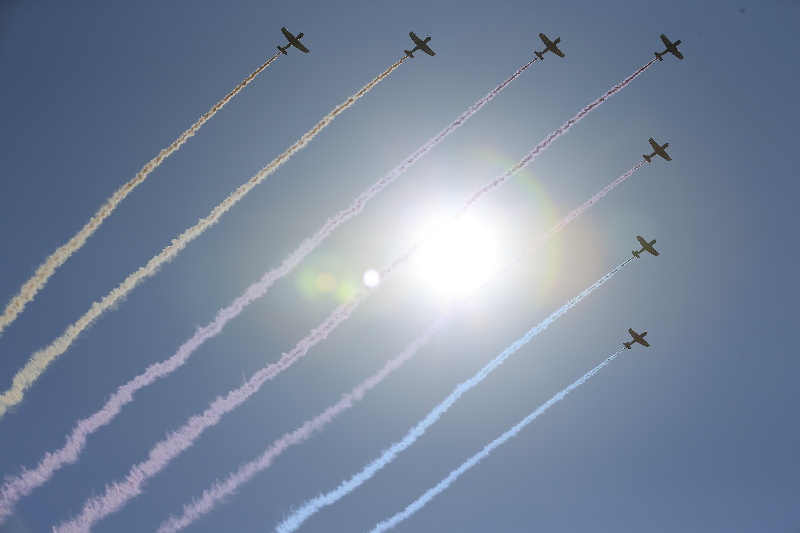 高清:大閱兵現(xiàn)場空中護(hù)旗方隊通過天安門廣場
