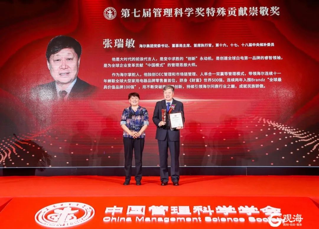 張瑞敏被授予第七屆管理科學特殊貢獻崇敬獎!