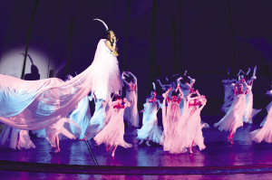此外,高超的魔幻手法在整場演出中起到了畫龍點睛的藝術(shù)效果。在“嶗山道士”章節(jié)中,主要采用了魔幻手法體現(xiàn)嶗山厚重的文化底蘊,只見身穿白衣的道士拂塵一揮,漫天花瓣。隨之,五個唱著童謠的頑童手拿釣竿跑到觀眾席中,就在與觀眾近距離的接觸中莫名地“釣”上了一條魚,玩耍間,又倏地變出了一只紅色小鳥,引得觀眾嘖嘖稱嘆。負責此次魔術(shù)表演創(chuàng)作的中國魔幻大師辛之寬在接受記者采訪時介紹說:“自己與崔亞楠導(dǎo)演從2005年起就有合作,此次很多的魔幻構(gòu)思較以往也有所突破與創(chuàng)新,自己很喜歡把呂思清老師從大貝殼中變出來的環(huán)節(jié)。”